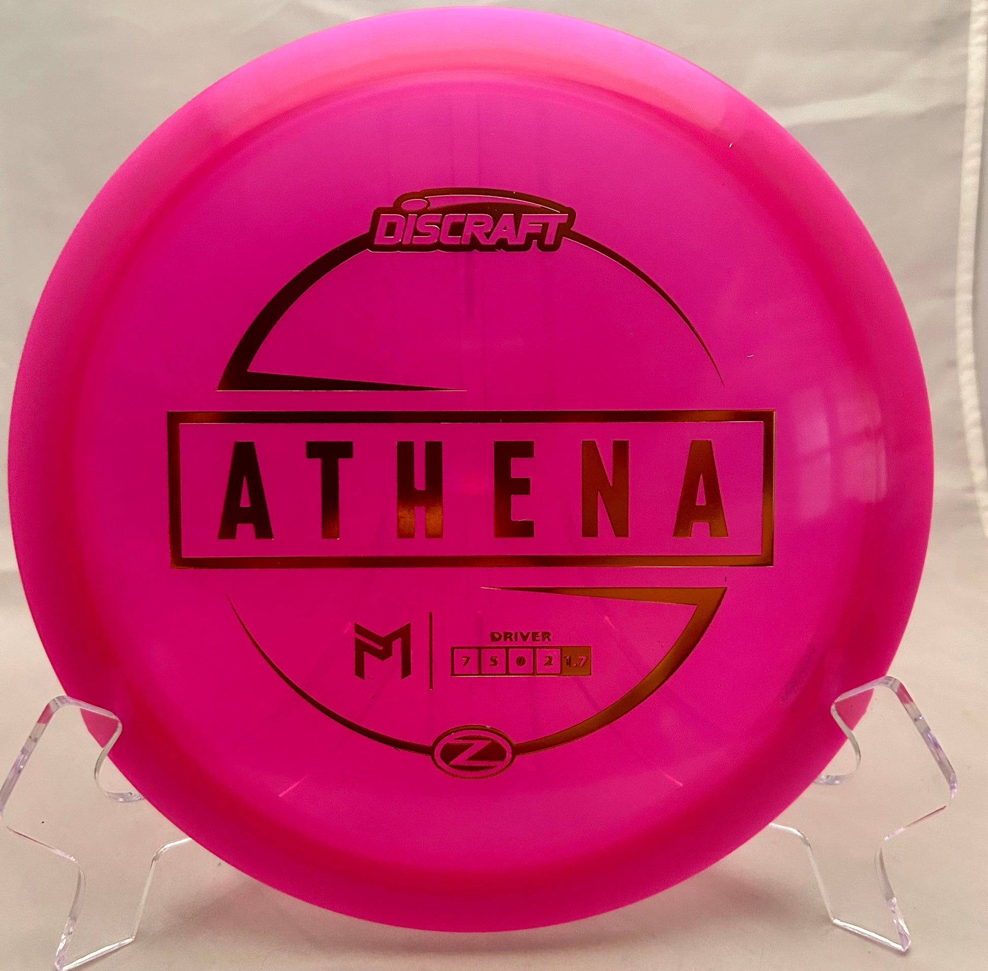 The PM Z Athena (stable to overstable) fairway driver from Discraft.